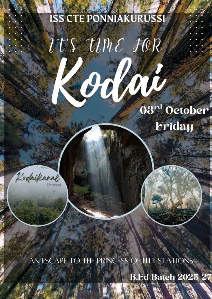 Ice-Breaking Trip to Kodaikanal – 3rd October 2025 The students of ISS College of Teacher Education, Ponniakurussi, Perinthalmanna, organized an exciting Ice-Breaking Trip to Kodaikanal on 3rd October 2025. The trip aimed to foster friendship, teamwork, and mutual understanding among the students of the new batch. The journey was filled with joy, laughter, and memorable